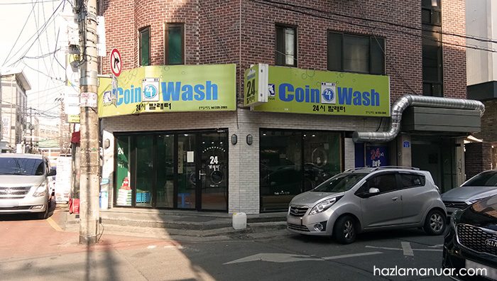 Penyelesaiannya, H.A segera Google. Pelbagai keyword digunakan ‘washing machine in Hongdae, ‘coin wash in Hongdae’, ‘coin laundry.’ Bertanya juga convenience store dengan menunjukkan terjemahan Bahasa Korea.