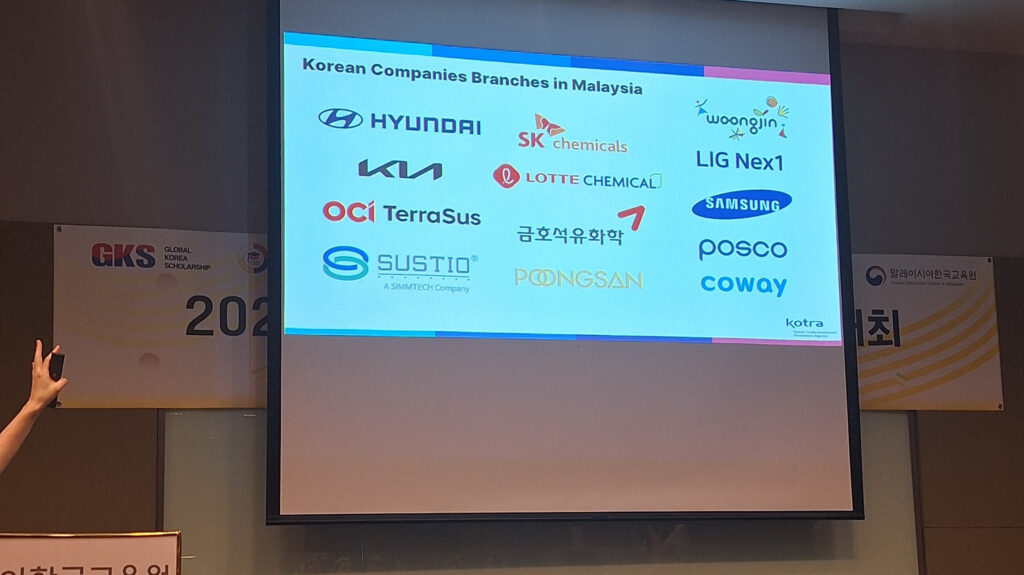 Sebelum saya (sesi kedua). Seorang wakil CONTACT KOREA menyampaikan ucapan kerjaya dan tempat kerja syarikat-syarikat Korea yang ada di Malaysia. Bakal penerima mendapat maklumat cara memohon selepas tamat belajar.
