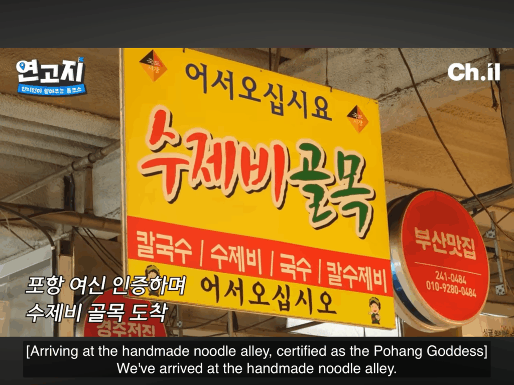 Mereka berdua makan tengah hari di gerai yang terletak di lorong mi buatan tangan dalam Pasar Jukdo.